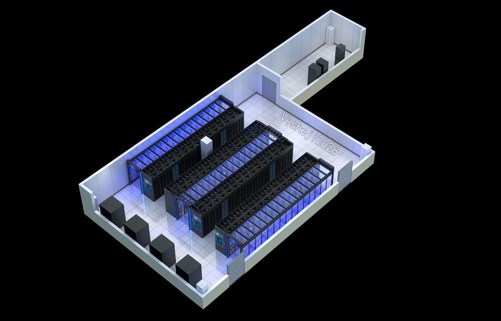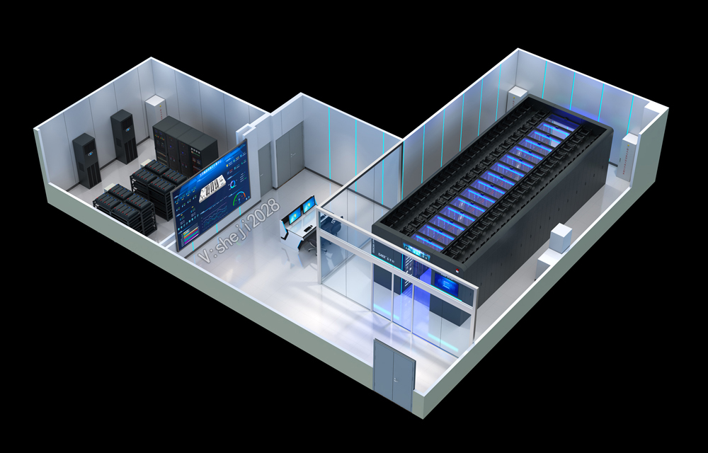 某港口運輸保障中心通信中心機房俯視角效果圖設(shè)計;