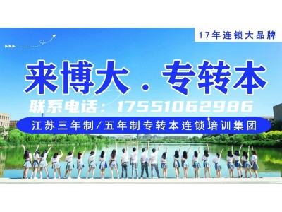江蘇瀚宣博大專轉本是江蘇省一家專業化、系統化、連鎖化、規模化主做五年制專轉本(五年一貫制專轉本)培訓輔導學校,擁有十余年教學輔導經驗,全日制上課模式,高.考式復習管理,嚴格的上下課打卡制度,提高學員上課的積極性和主動性,擁有強大的師資力量,詳細精準的內部學習資料,并有班.主任老師、教務老師、授課老師的管理和督促,提高聽課及備考效率!全年滾動開班,隨到隨學,一次報名可循環上課至考前,1-5年級考生均可報名參加,越早報名,課時量越多,基礎越扎實!更多五年制專轉本備考詳情及預約免費試聽可聯系瀚宣博大專轉本賈老師1755(微)1062(同)986。