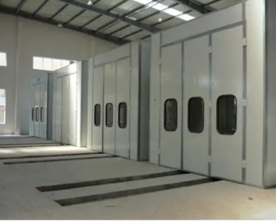 整個噴漆房為拼裝式結構,房體采用插式保溫夾心彩鋼板,密封、保溫性能好,房體裝有工作門,方便工作人員進出;鋁合金包邊大門,門裝有觀察窗,可觀察房內動態,選用低噪音,高風量風機,確保噴漆效果的性,噴漆時外部空氣經過粗效、中效過濾后由風機送到氣壓分流層,再經過頂部過濾凈化后,進入噴房內。房內空氣采用全降式,以0.2-0.3m/s的速度向下流動,使噴漆后的噴霧克粒不能在空氣中停留,而直接通過底部出風口被排出房外,加上噴房內具有一定的空氣壓力,外部灰塵無法進入噴房內,這樣不斷地循環轉換,且送入的空氣具有一定的壓力,可在工件四周形成一恒定的氣流以去除過量的油漆,從而較大限度的保證噴漆的質量。