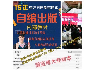 五年制專轉本培訓輔導選擇江蘇瀚宣博大專轉本學校,擁有17年教學培訓經(jīng)驗,不僅有更有效的培訓方案,更有專業(yè)的師資團隊,全面的課程,充足的課時,考取本科有保障,開設有英語和所有主考院校全部專業(yè)課輔導課程,英語根據(jù)同學們基礎情況分班,大班、小班、1對N全部都有,詞匯、語法、閱讀、寫作等所有模塊全部講解,課堂教學加鞏固,月考查漏補缺確保全面?zhèn)淇迹?/span>